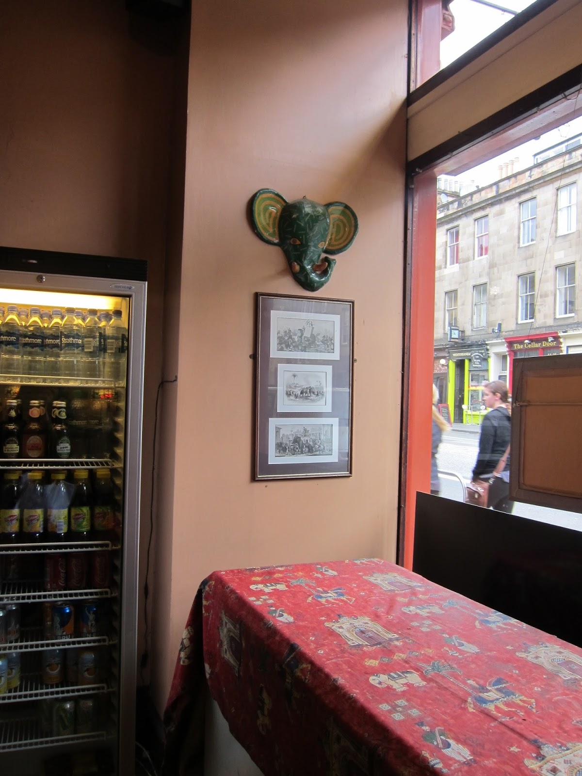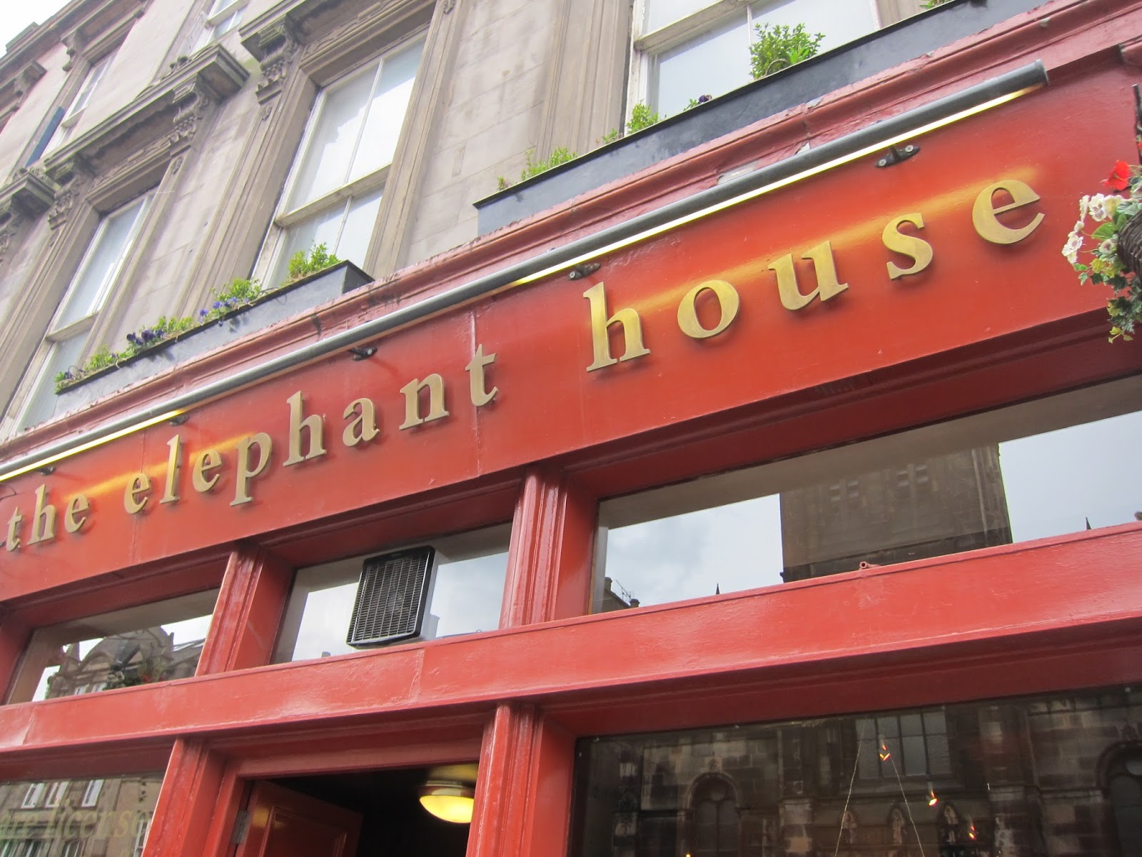這間餐廳非常的有名氣,在英國唸書的朋友叫我一定要來朝聖一下,因為他是哈利波特的誕生地,作者J.K. 羅琳(Rowling)未成名前在此完成了哈利波特的第一集,店門裝潢很好認是大紅色非常的顯眼,在加上門口的窗戶也寫著"Birthday of Harry Potter",想必也吸引了全世界各地來的麻瓜前來,哈利波特第一集的簽書會就是在象屋舉辦,店內牆面上也有很多關於哈利波特的報導,我想這也是一種行銷的手法